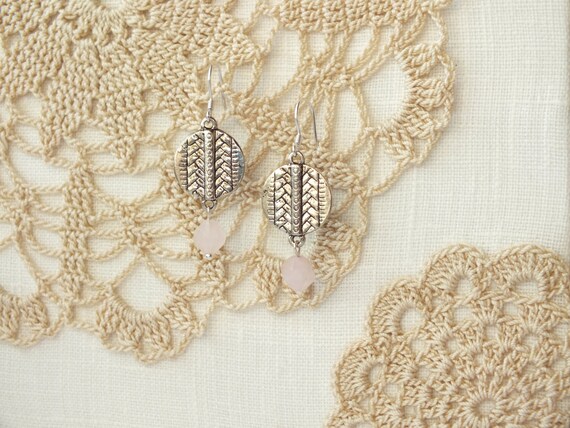 Beaded Drop Earrings, Earrings,Rose Quartz Jewelery, Gemstone Earrings,Christmas gift, Rose Quartz dangle earrings, Dangle Earrings by JuliannaTreasure