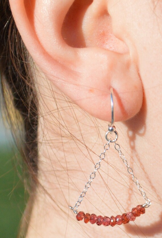 Garnet Earrings, Delicate Earrings, G...