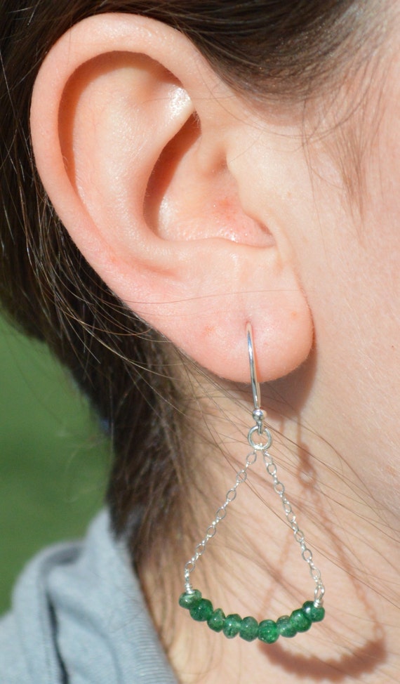 Emerald Green Aventurine Earrings, Delicate Earrings, Gold Earrings, Sterling Earrings, Rose Earrings, Copper, Dangle Earrings, Gemstone by Alaridesign