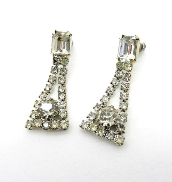 Dangling Rhinestone Bridal Earrings, Vintage Pierced Silver Tone Earrings, Chandelier Studs, Gift for Her by LeesVintageJewels