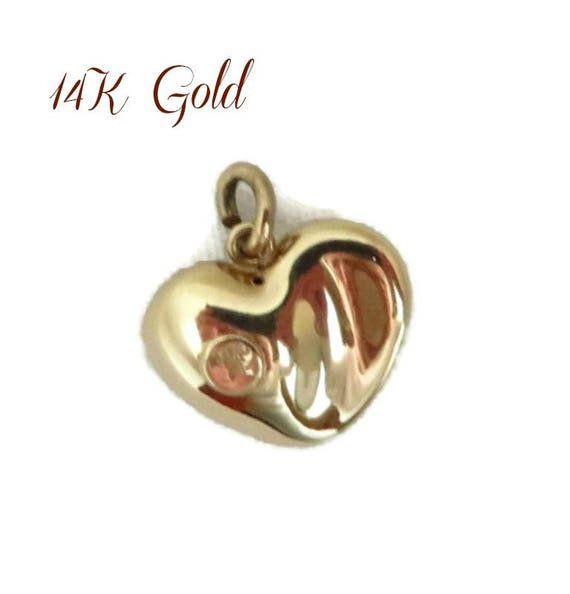15% OFF coupon on 14K Gold Puffy Heart Pendant, Yellow Gold Estate Antique Heart Charm by LeesVintageJewels