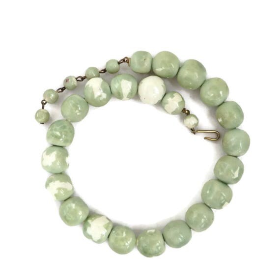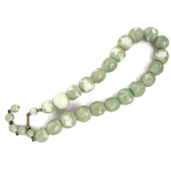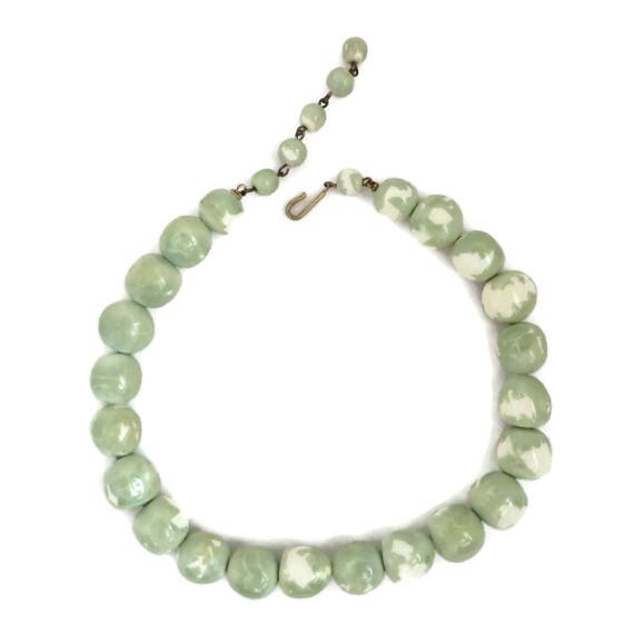 15% OFF coupon on 1950s Beaded Choker - Green Spatter Bead Necklace, Madmen Jewelry, Chunky Choker, Gift for Her by LeesVintageJewels