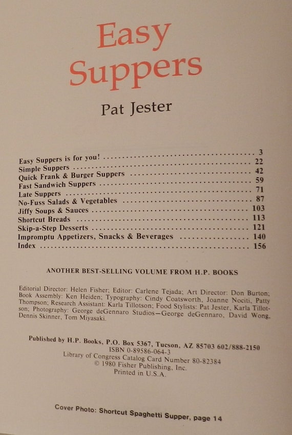 20% OFF coupon on 1980 Easy Suppers by Pat Jester Cook Book 1A