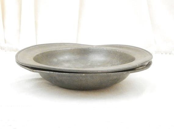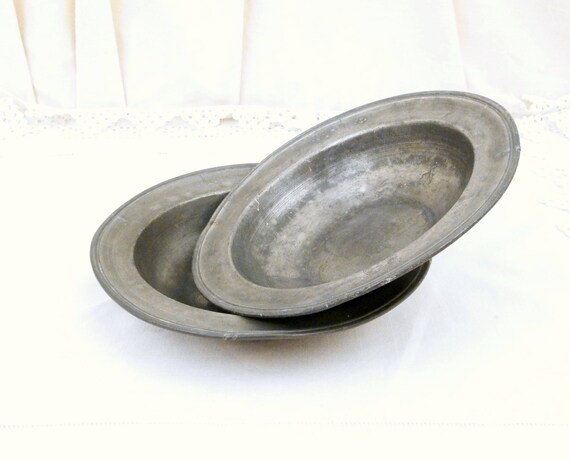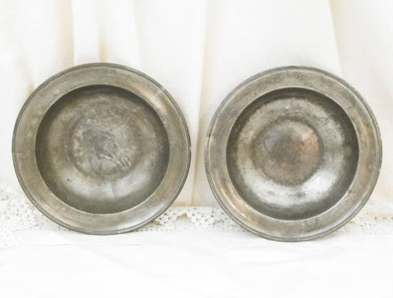 20% OFF coupon on 2 Antique French Pewter Dish / Platter / Plate Circa 18th Century, Pair of Metal Soup Bowls from France, Brocante Kitchen Retro Decor, Prop by VintageDecorFrancais