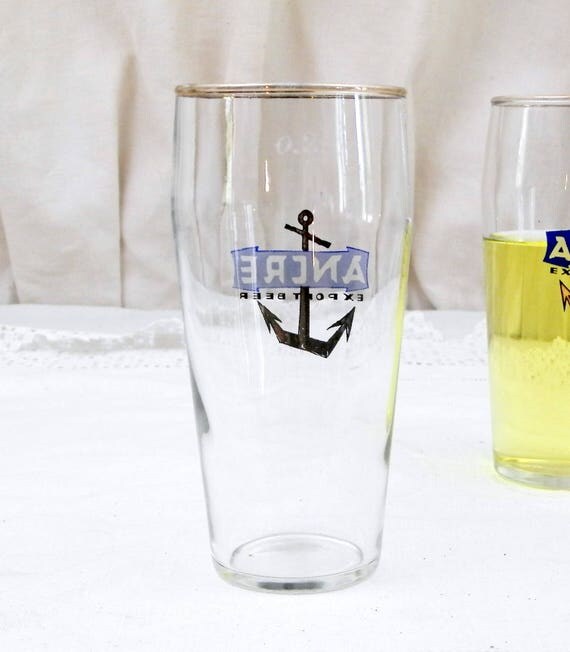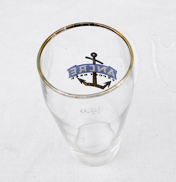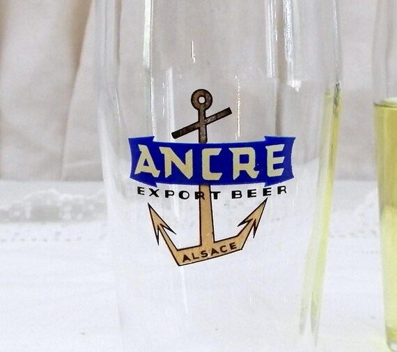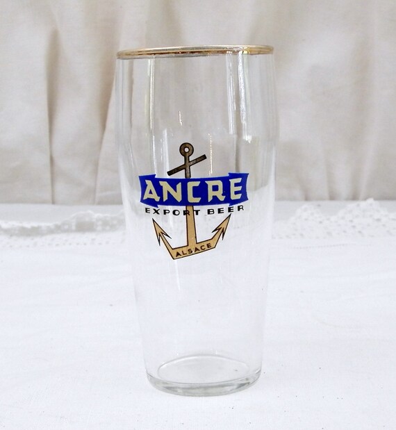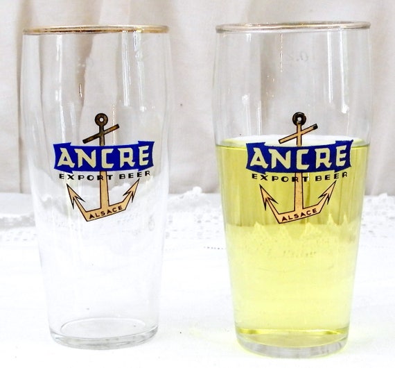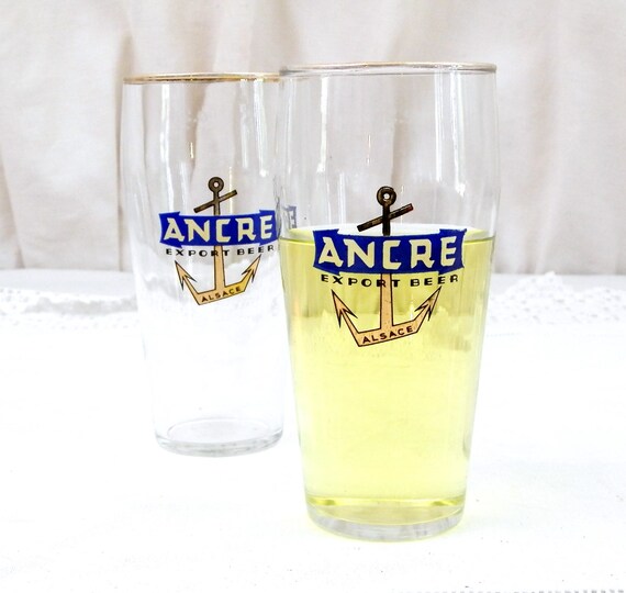 20% OFF coupon on 2 Vintage French Beer Glasses "Ancre Export Beer" From Alsace in Eastern France, Pair of 0.25 cl Glasses with Gold Rim and Anchor Motif by VintageDecorFrancais