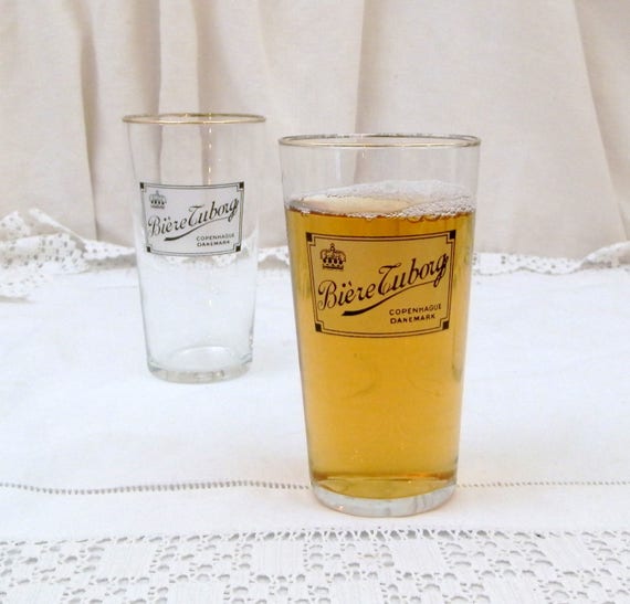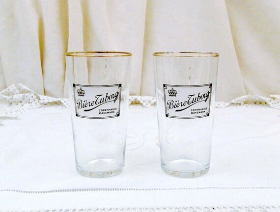 20% OFF coupon on 2 Vintage Tuborg Beer Glasses with Gold Rim 25 cl from France, Pair Retro Danish Beer Glass, Biere Tuborg Copenhagen Denmark, Brewania by VintageDecorFrancais