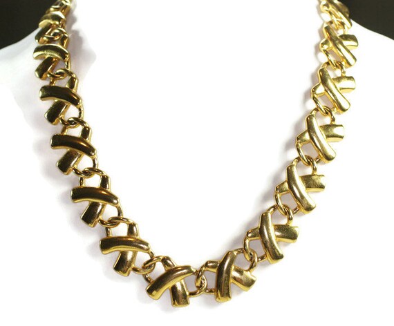 15% OFF coupon on Anne Klein Necklace Gold Tone X Links Bold Chunky 1980s Retro