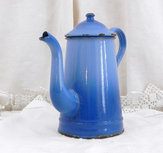20% OFF coupon on Antique 2 Tone Blue Enamelware Cafetière / Coffee Pot / French Country Decor / Retro Vintage Home Interior / kitchenalia Cottage Kitchen by VintageDecorFrancais