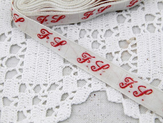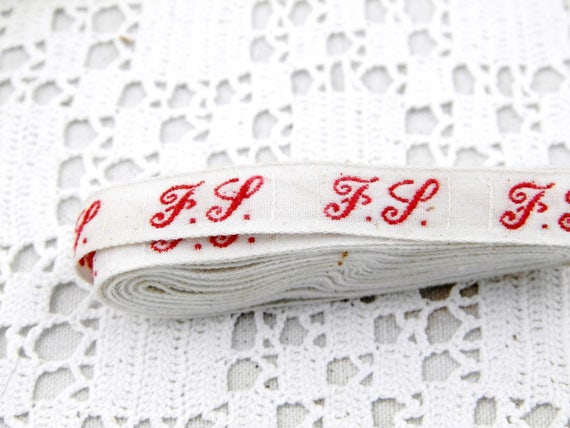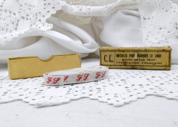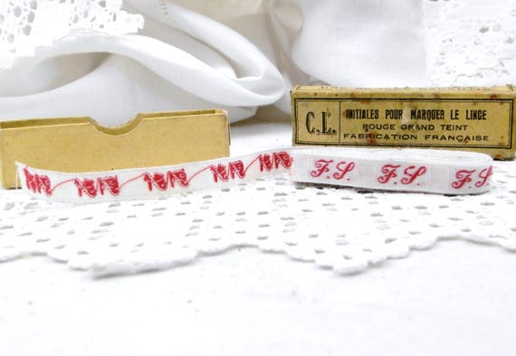 20% OFF coupon on Antique 210 cm / 83 inches Unused French Fabric Laundry Labels Letters F L with Box, Clothes Initial Tags from France, Monogram Label by VintageDecorFrancais