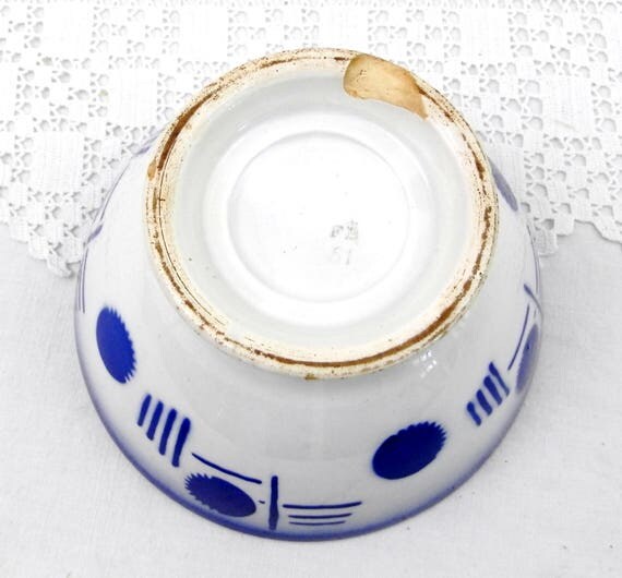20% OFF coupon on Antique Blue and White Art Deco Coffee Bowl from France, French Farmhouse Ceramic Café au Lait Bowl, Country Cottage Kitchen Latte Bowl by VintageDecorFrancais