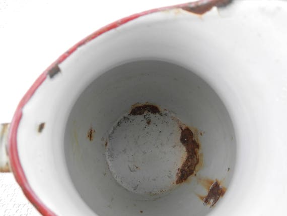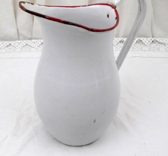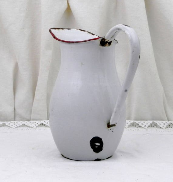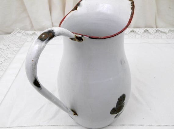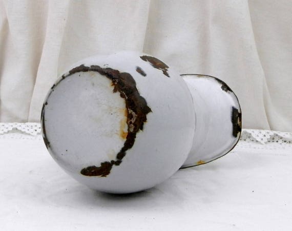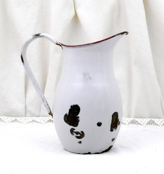 20% OFF coupon on Antique Chippy Enamelware Pot Bellied Pitcher from France, Enamel Jug / Vase, French Rustic Shabby Chateau Cottage Chic, Country Decor by VintageDecorFrancais