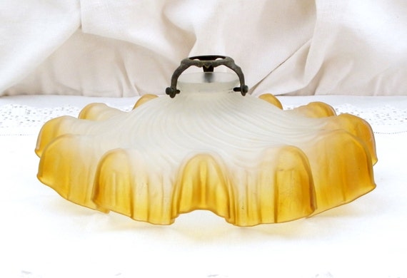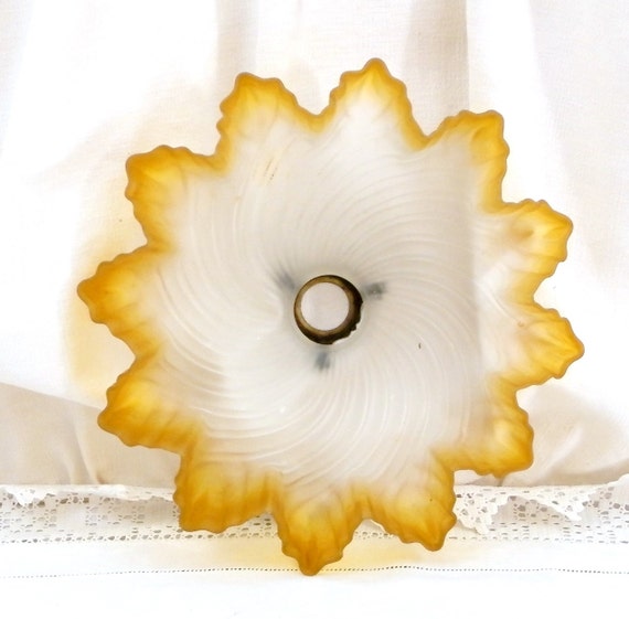 20% OFF coupon on Antique French Amber and Frosted Opaline Glass Light Shade, French Country Decor, Rustic, Primitive, Decor, Brocante, Chic, France, Opaque by VintageDecorFrancais
