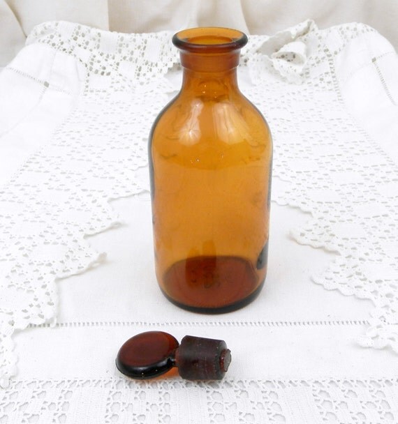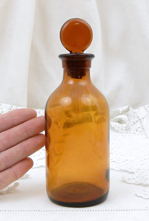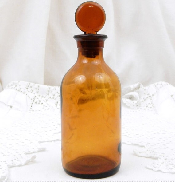 20% OFF coupon on Antique French Amber Glass Medicine Apothecary Bottle with Glass Stopper, French Country Decor, Retro Parisian Chemist Pharmacy Decor France by VintageDecorFrancais