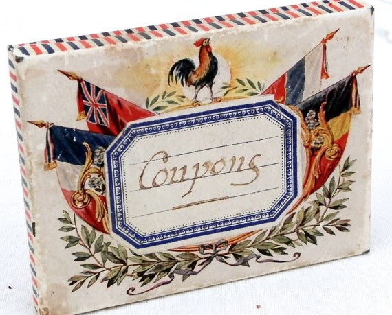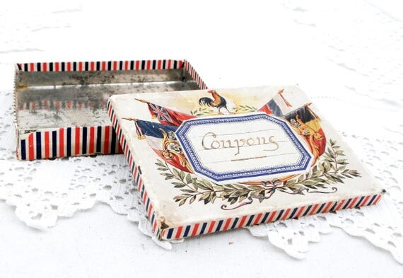 20% OFF coupon on Antique French and Dutch, Tricolor Flags with Belgian and British Flag and French Roaster Paper Covered Metal Tin with Label, Collectable by VintageDecorFrancais