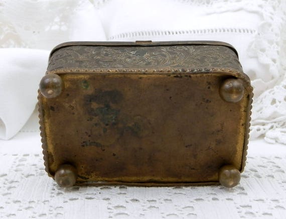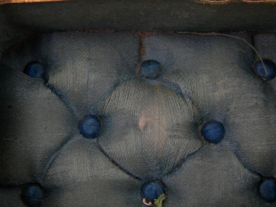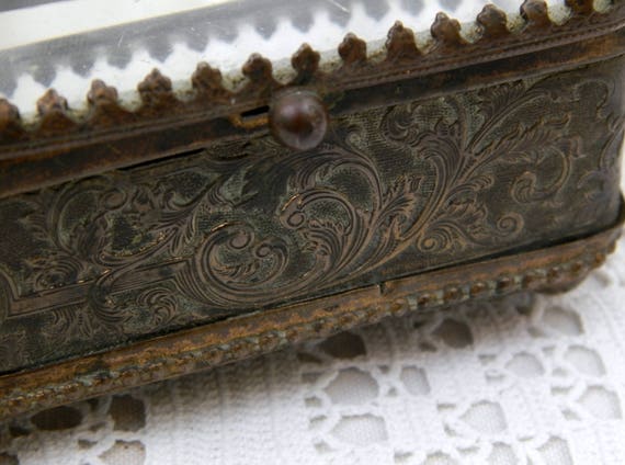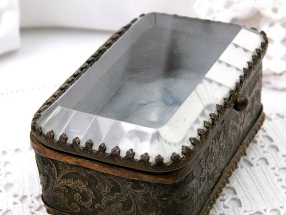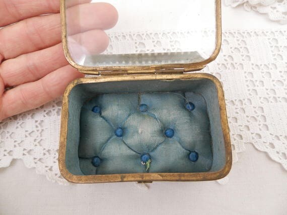 20% OFF coupon on Antique French Beveled Glassed Lid and Gilt Metal Jewelry / Trinket Box with Turquoise Satin Linning, French Country Chateau Chic Decor by VintageDecorFrancais
