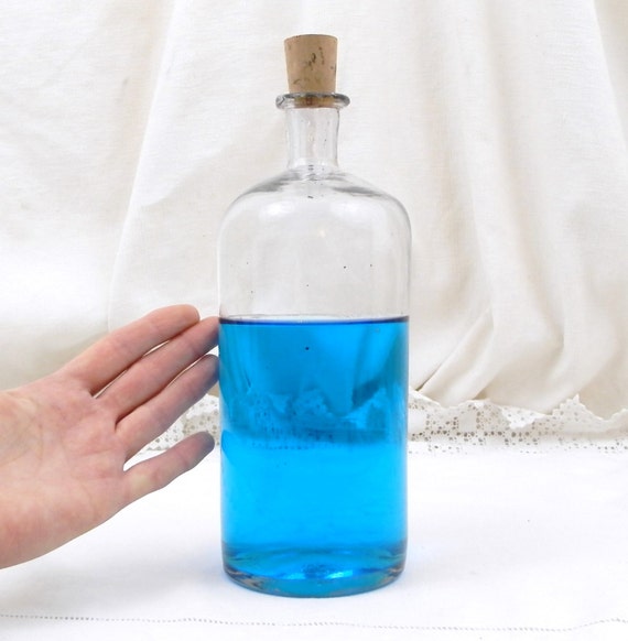 20% OFF coupon on Antique French Blown Clear Glass Apothecary / Chemical Bottle With Cork, Chemist, Country Decor, Kitchen, Vase, Chemisty, Perfume, Retro by VintageDecorFrancais