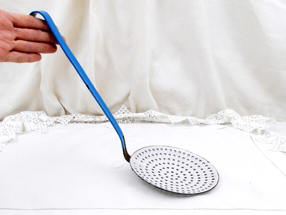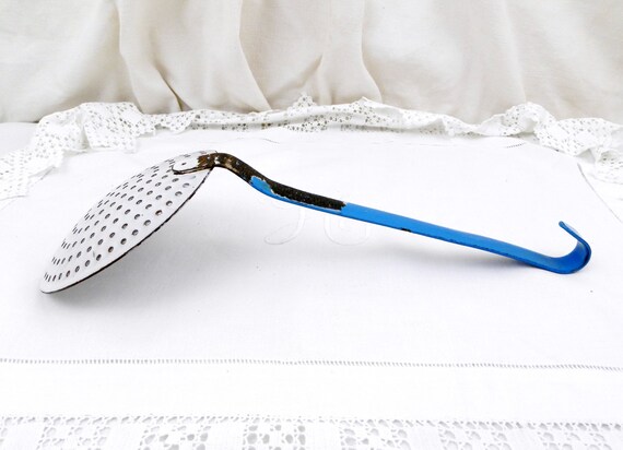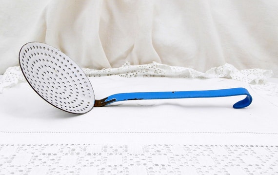 20% OFF coupon on Antique French Blue and White Chippy Enamelware Strainer, French Country Decor, Kitchen, Cooking Utensil, Retro Home, Cooking, Egoutoir by VintageDecorFrancais