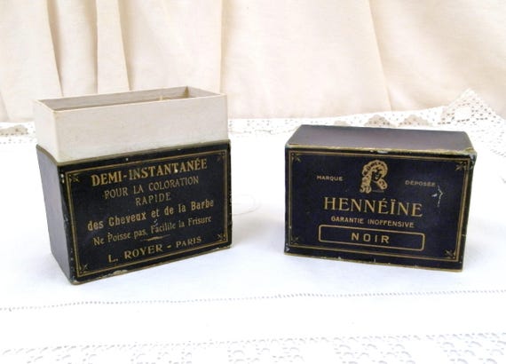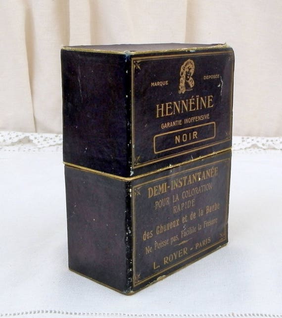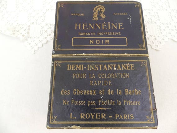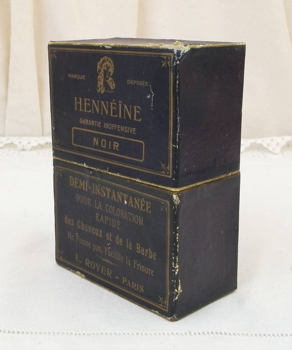 20% OFF coupon on Antique French Box Originally Contained Hair and Beard Black Dye "Hennéine" by L.Royer Paris, Vintage Hair Styling From France, Collectible by VintageDecorFrancais