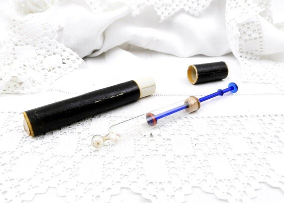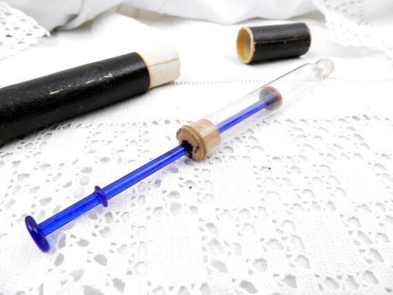 20% OFF coupon on Antique French Boxed Blue and Clear Glass Syringe Extractor / Extraction Tube, Apothecary Laboratory Medical Equipment, Curios Doctor Prop by VintageDecorFrancais