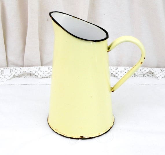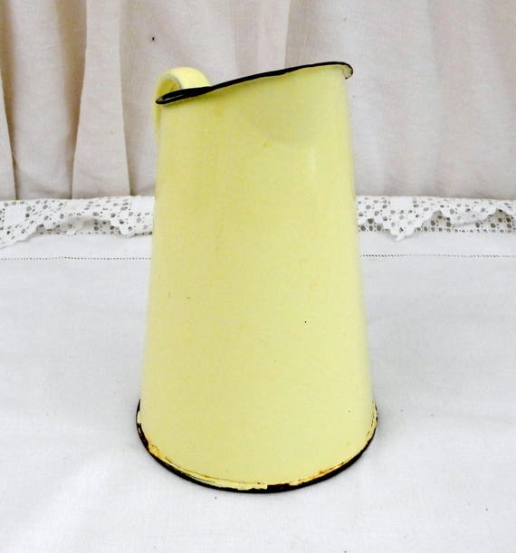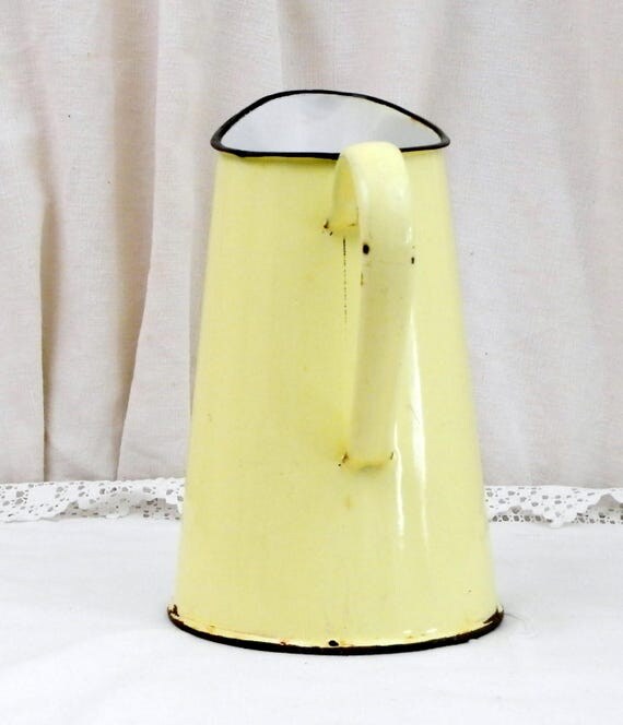 20% OFF coupon on Antique French Buttercup Yellow Enamel Pitcher, Chippy Cottage Kitchen Enamelware Jug, French Country Chateau Shabby Chic, Vintage Decor by VintageDecorFrancais