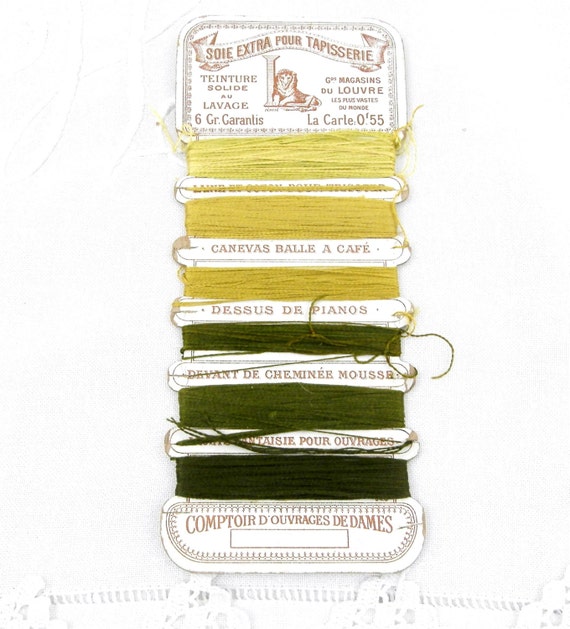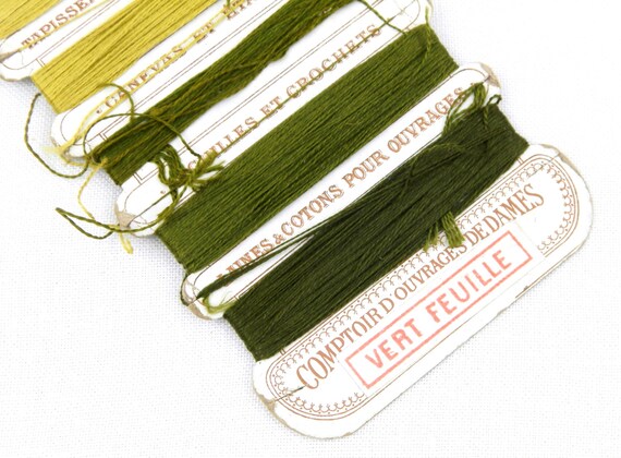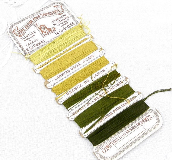 20% OFF coupon on Antique French Card of 6 Shades Green Embroidery Silk Threads, Les Grands Magasin du Louvres, French Decor, Craft Supplies, Parisian Sewing by VintageDecorFrancais