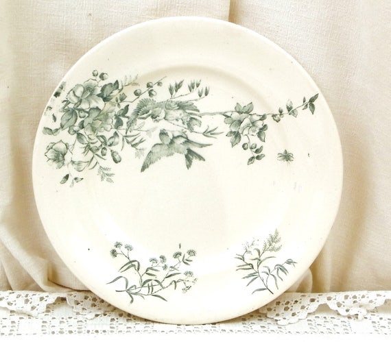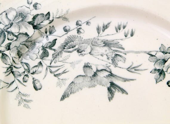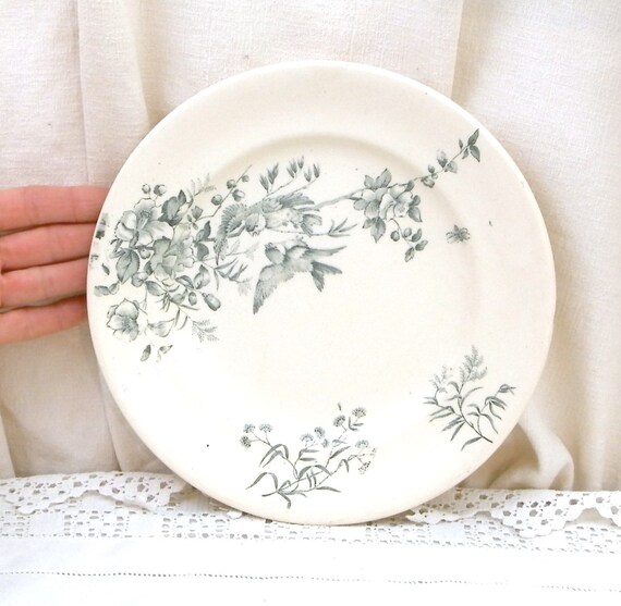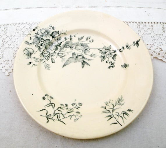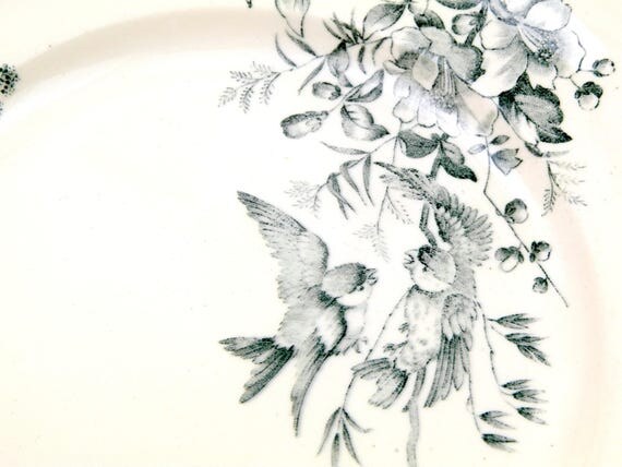 20% OFF coupon on Antique French Ceramic Bird Pattern Plate, Dark Blue on White Blue Tits with Wild Rose Design, Victorian Decorative Dinnerware by VintageDecorFrancais