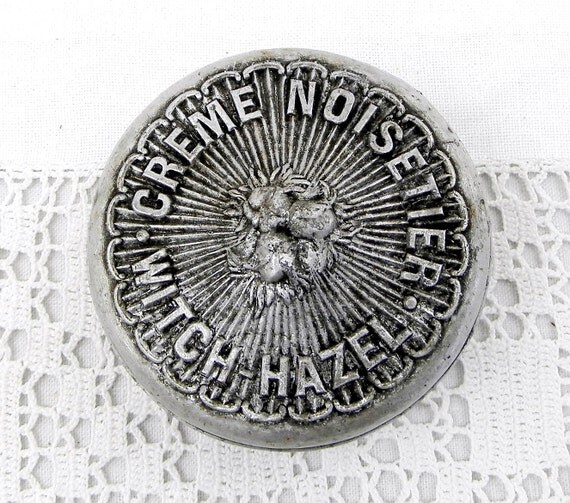 20% OFF coupon on Antique French "Creme Noisetier" Witch-Hazel Cream Embossed Metal Tin by Brisson Paris, French Country Apothecary Decor, Retro Brocante by VintageDecorFrancais