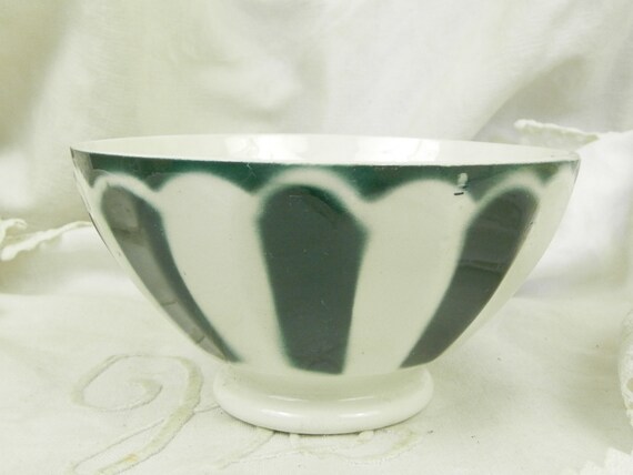 20% OFF coupon on Antique French Farmhouse Dark Green and White Coffe Bowl Café au Lait Bowl / French Country Decor / Retro Vintage Home Interior / Kichenalia by VintageDecorFrancais