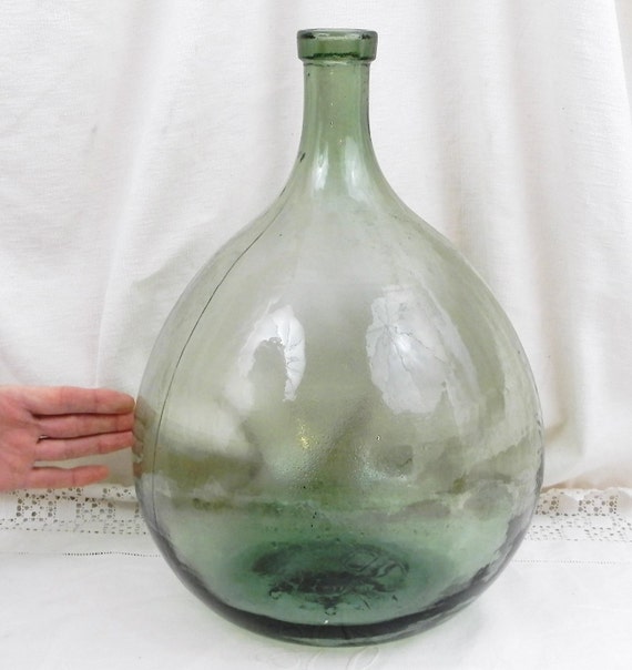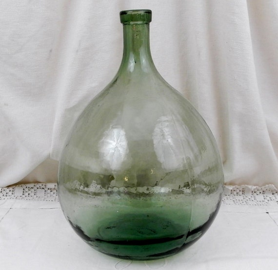 20% OFF coupon on Antique French Green Glass Demijohn / Carboy 10 L / 2.64 Gallon, French Decor, French Country Decor, Rustic Cottage, Bottle Vase, Glass Vase by VintageDecorFrancais