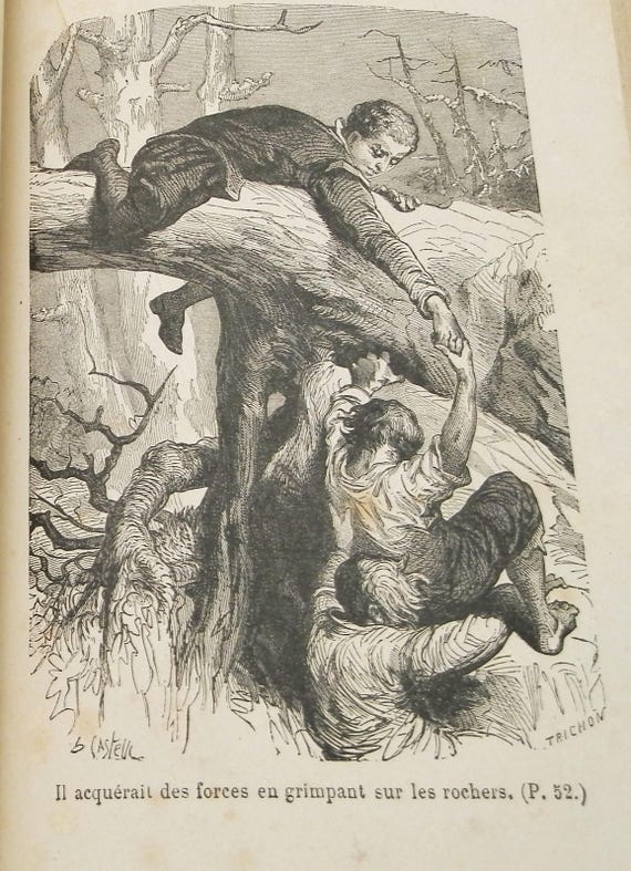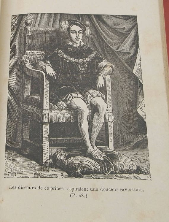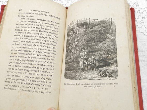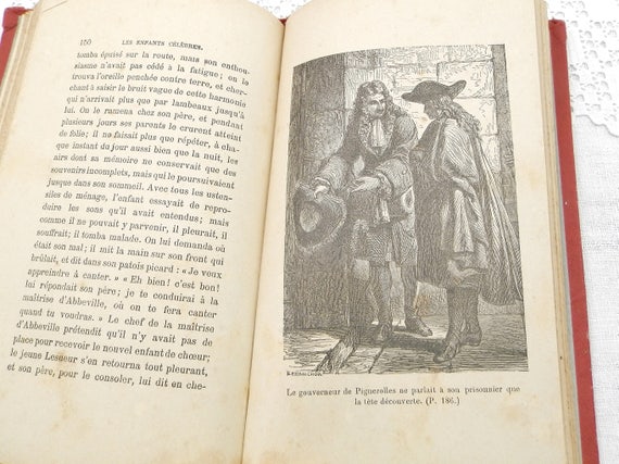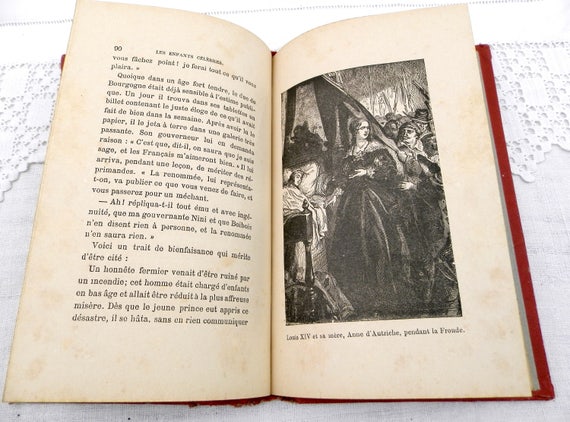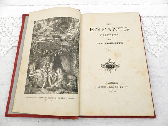 20% OFF coupon on Antique French Historical Book Les Enfants Celebres Famous Children by E J Chaumette, Red Cover Gold and Blue Floral Pattern 6 Illustrations by VintageDecorFrancais