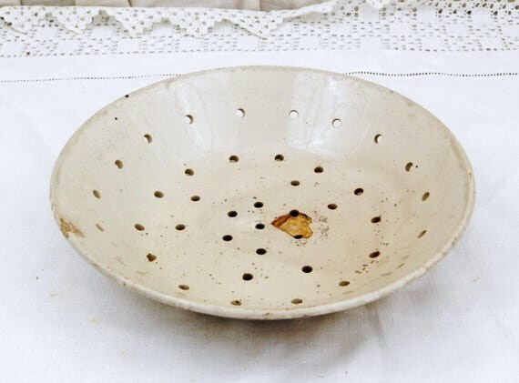 20% OFF coupon on Antique French Ironware " Terre de Fer " Chroisy le Roi Strainer Plate, Berry Bowl, Cheese, Colander, French Country, Cottage, Shabby, Chic by VintageDecorFrancais