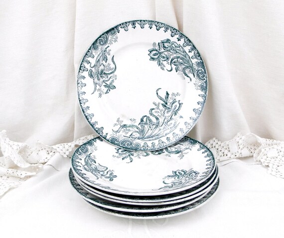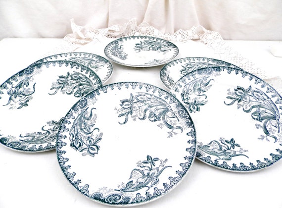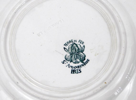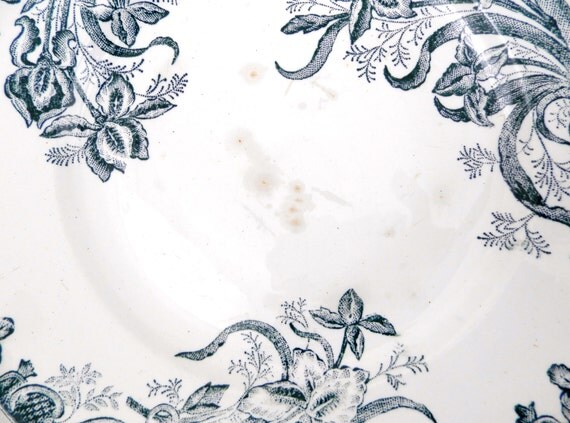 20% OFF coupon on Antique French Ironware Terre de Fer St Amandinoise China Dinner Plate with Dark Blue Iris Pattern, Chateau Chic, French Country Decor by VintageDecorFrancais