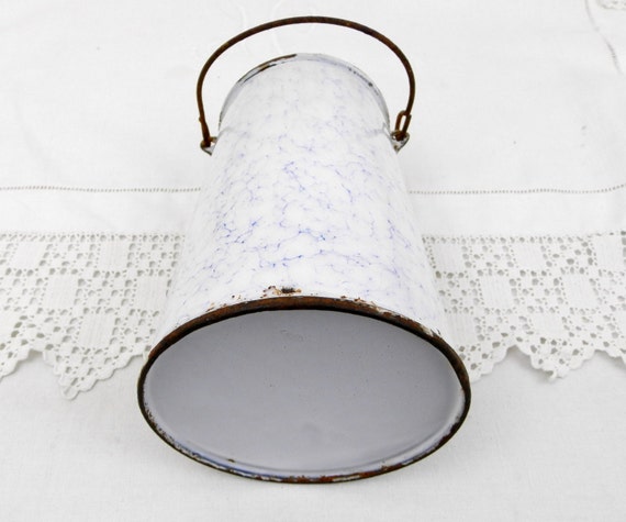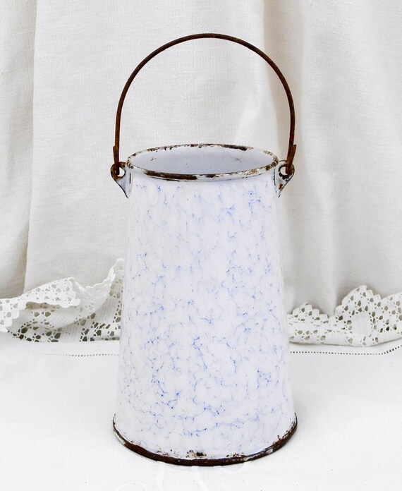 20% OFF coupon on Antique French Marbled Blue and White Enamelware Milk Pail / Churn, French Country Decor, Vintage, Chateau, Shabby, Chic, Retro, Kitchen by VintageDecorFrancais