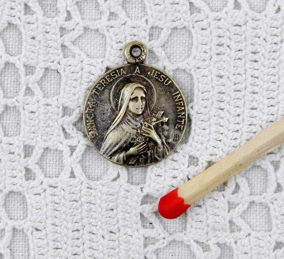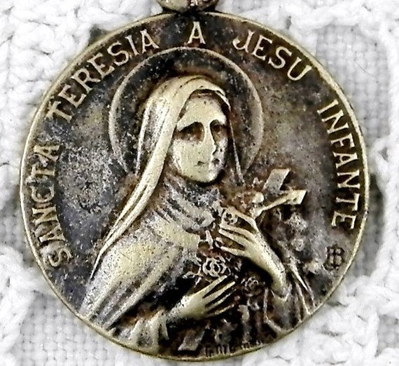20% OFF coupon on Antique French Medal Religious Silver Plated Medal Saint Teresa, St Therese Religion, Christian, Catholic, Charm Medal, Lisieux, Normandy by VintageDecorFrancais