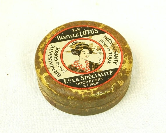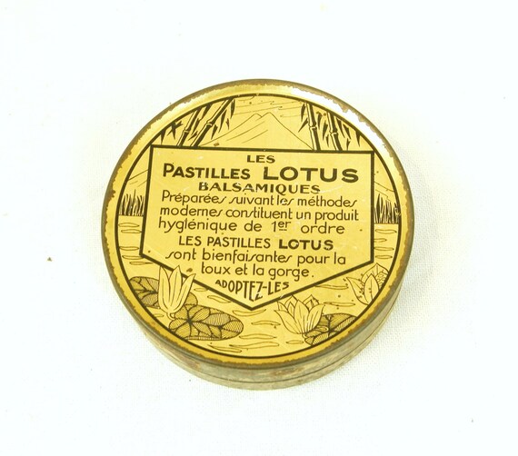 20% OFF coupon on Antique French Metal Tin for "La Pastille Lotus" Medical Candy / French Decor / Vintage Retro Gift / Apothecary / Medical / Box / Japan by VintageDecorFrancais