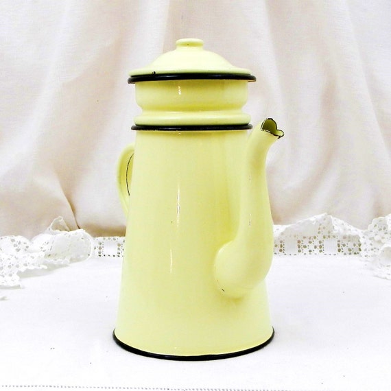 20% OFF coupon on Antique French Pale Buttercup Yellow Enamelware Cafetière Excellent Condition, Coffee Pot, French Country Decor, Retro, Vintage, Home by VintageDecorFrancais