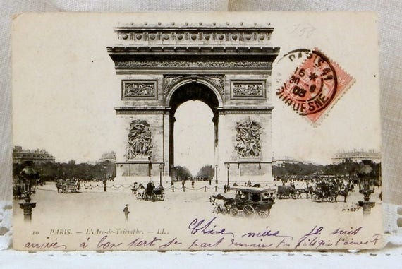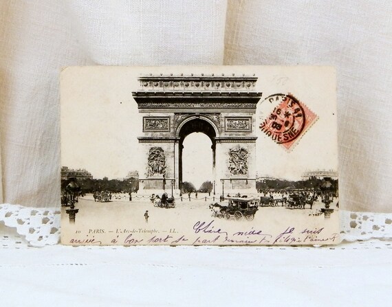 20% OFF coupon on Antique French Postcard of the L'Arch de Triomphe Posted in 1903, French Decor, Souvenir Tourist Black and White Card from Paris France by VintageDecorFrancais