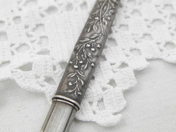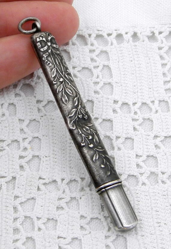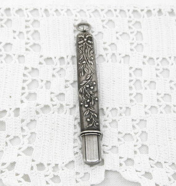 20% OFF coupon on Antique French Silver Pendant Pencil Holder, Precious Metal Pen Case for a Necklace, Victorian Novelty Jewelry with Cherry Pattern by VintageDecorFrancais