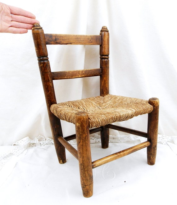 20% OFF coupon on Antique French Small Wooden with Straw Seat Chair, Child Seat, Child's Furniture, Kids, Bedroom, Dolls, House, French Country Decor, Retro by VintageDecorFrancais