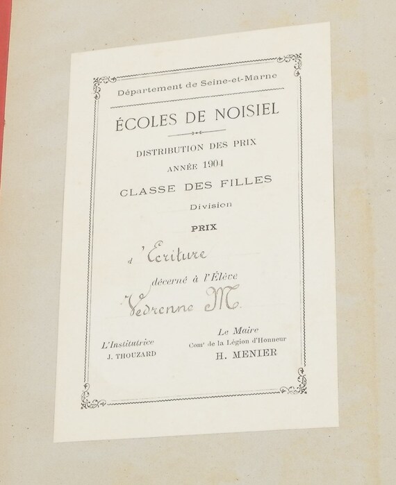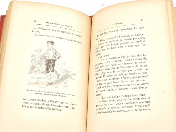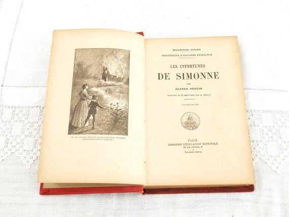 20% OFF coupon on Antique French Victorian Hard Back Novel with Red and Gold Decorative Cover Les Infortunes de Simonne, 1900 School Pupil Prize from France by VintageDecorFrancais
