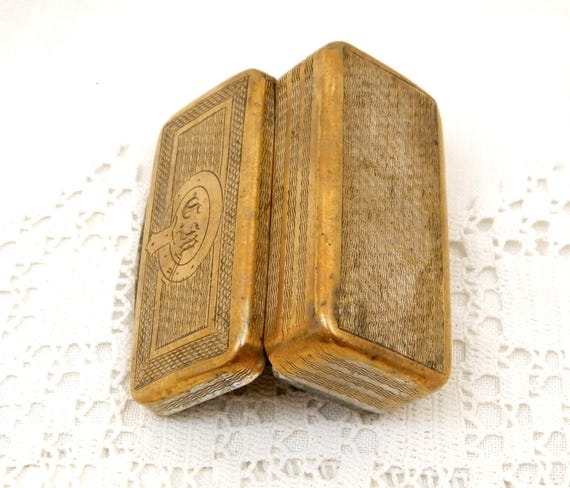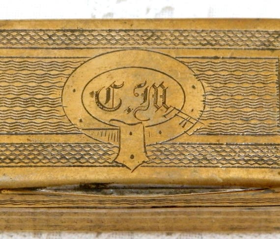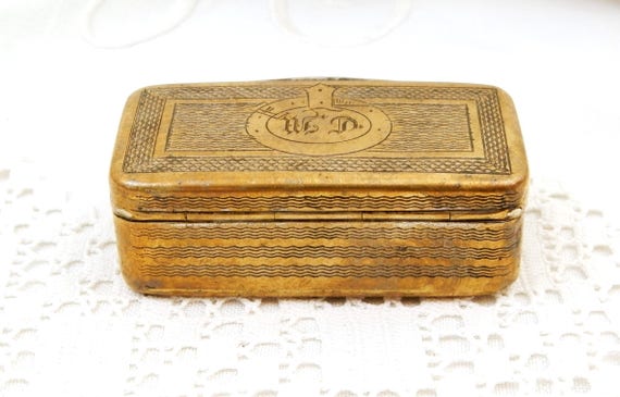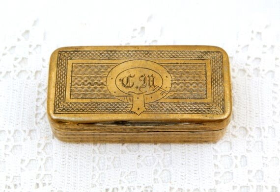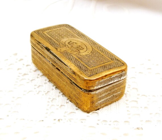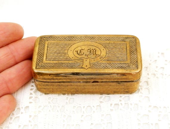 20% OFF coupon on Antique French Victorian Rectangular Small Brass Box Engraved with the Monograms CM, Metal Snuff Box with Initials CM From France, Retro Tin by VintageDecorFrancais