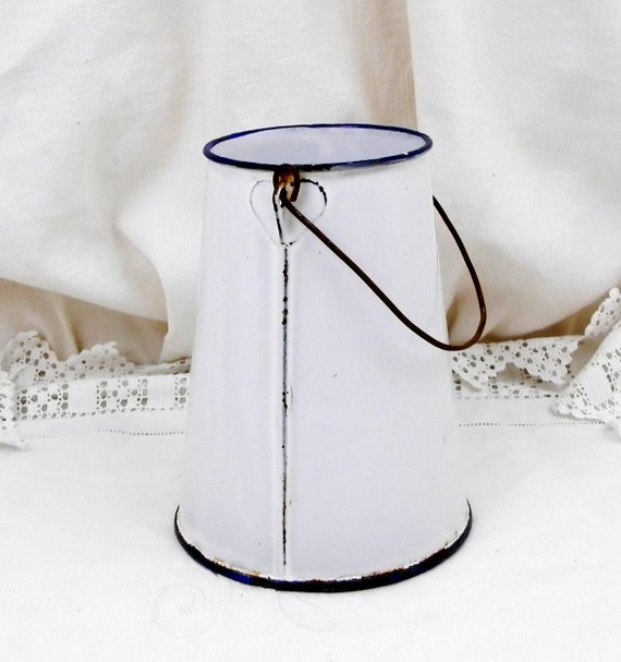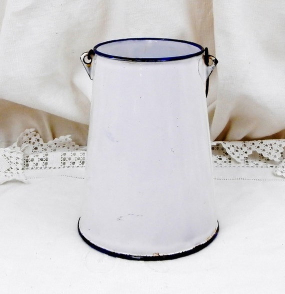20% OFF coupon on Antique French White Enamelware Milk Pail / Churn, French Country Decor, Vintage, Chateau, Shabby, Chic, Retro, Kitchen, Cottage, Rustic by VintageDecorFrancais