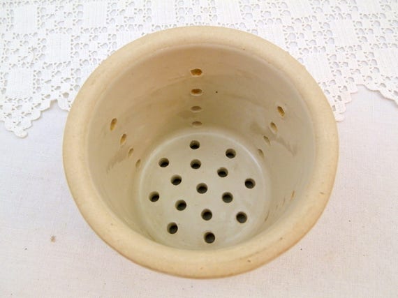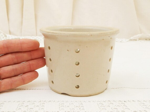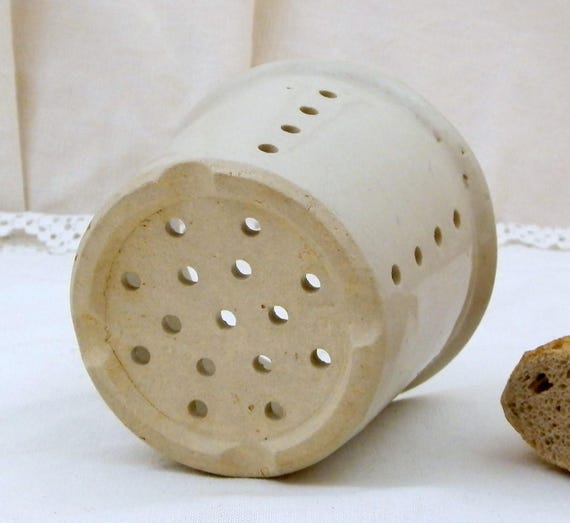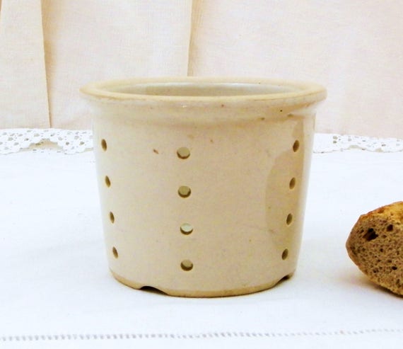 20% OFF coupon on Antique French White Glazed Ceramic Cheese Strainer Pot, Stoneware Faisselle Drainer Vessel from France, Farmhouse Cottage Kitchen Decor by VintageDecorFrancais