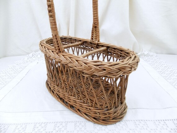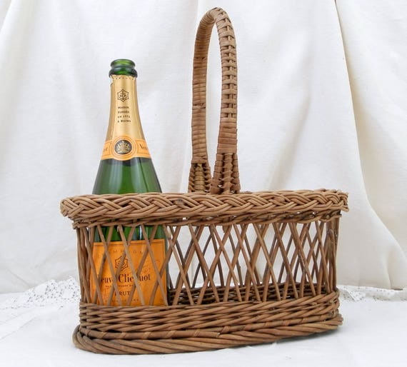 20% OFF coupon on Antique French Woven Wicker Basket Bottle Carrier for 3 Bottles, French Country Decor Kitchen, Champagne Cellar, Picnic, by VintageDecorFrancais