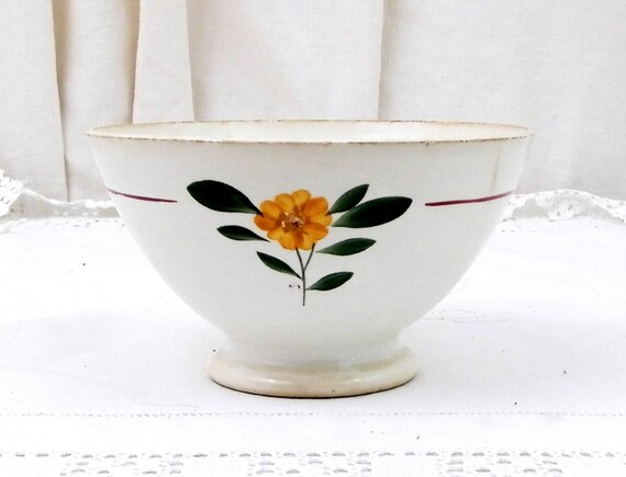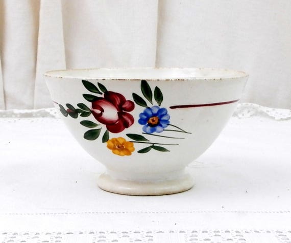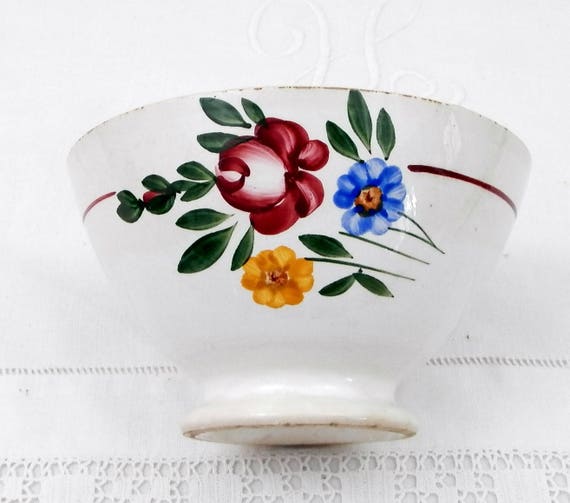 20% OFF coupon on Antique Hand Painted Farmhouse Coffee Bowl with Flower Pattern from France by Sarreguemines, French Country Café au Lait, Cottage Kitchen by VintageDecorFrancais