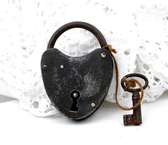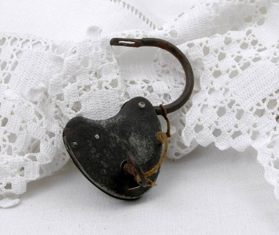 20% OFF coupon on Antique Heart Shaped Black Iron Working Padlock with Original Key From France, Steam Punk Decor, Lock Collection, Love Lock Wedding Gift by VintageDecorFrancais