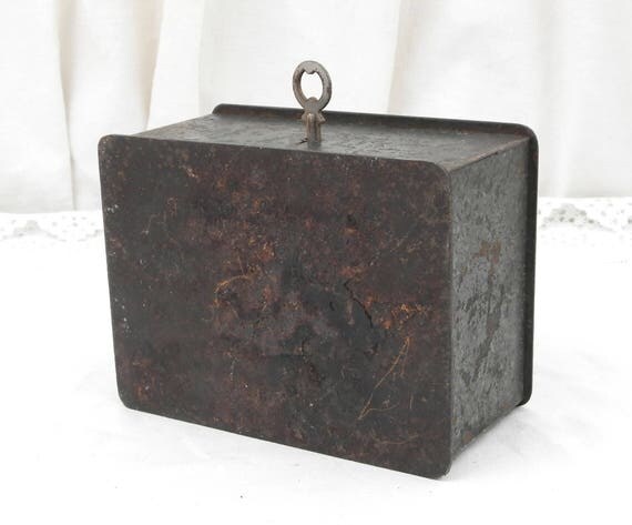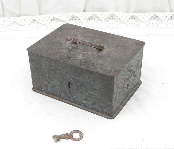 20% OFF coupon on Antique Heavy Metal Cash Box / Coffer with Working Lock and Key, French Money Safe, Jewelry / Trinket Chest Casket Box by VintageDecorFrancais
