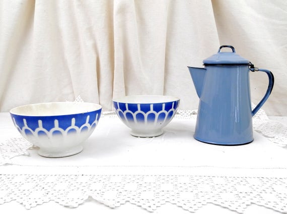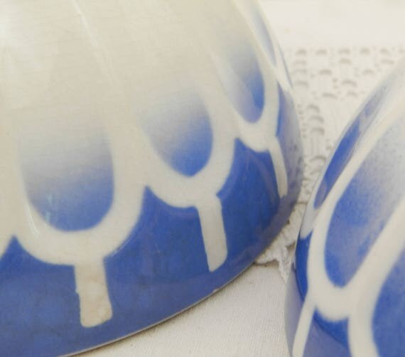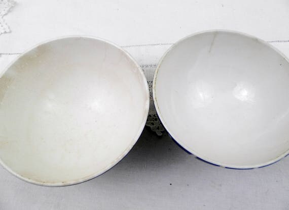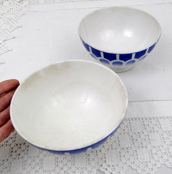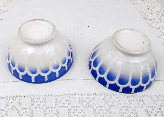 20% OFF coupon on Antique Large Blue and White Coffee Bowls with Scalloped Sides from France, French Farmhouse Ceramic Café au Lait Bowls, Country Latte Bowl by VintageDecorFrancais