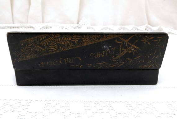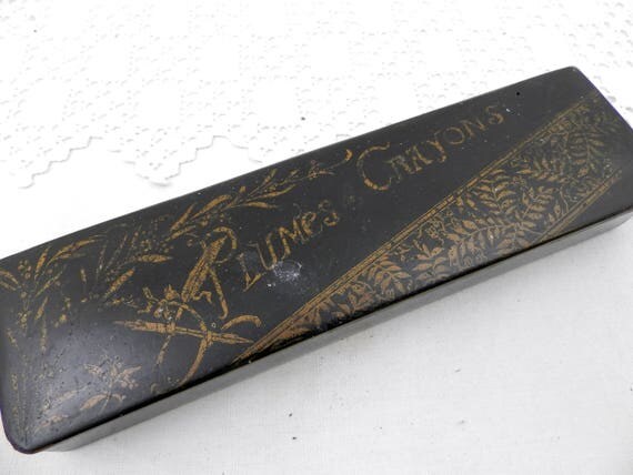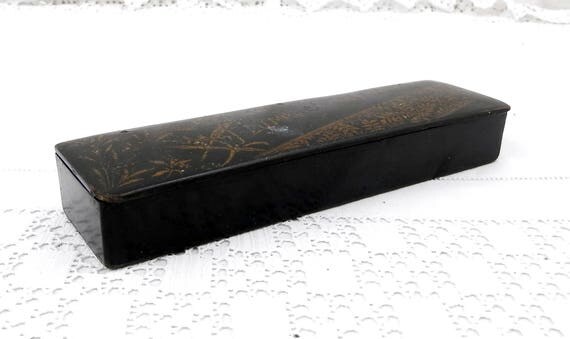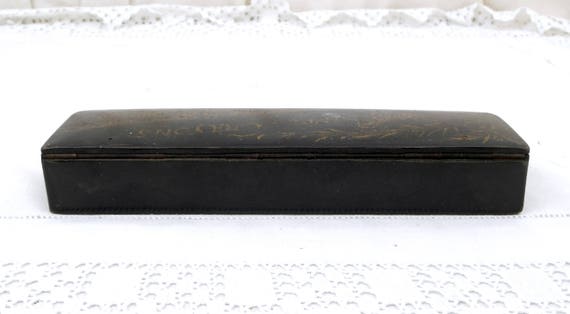 20% OFF coupon on Antique Napoleon III / 3 Black Lacquer and Gold Gilt Carton Bouilli / Papier Mache Pencil and Fountain Pen Box, French Pen Holder, Desk by VintageDecorFrancais