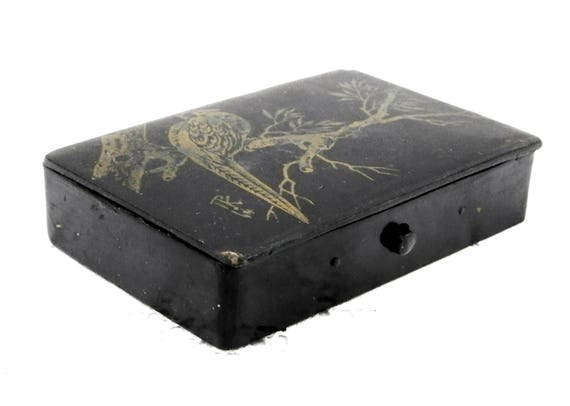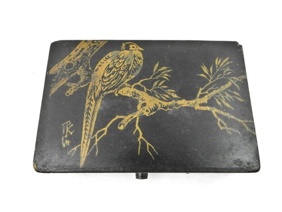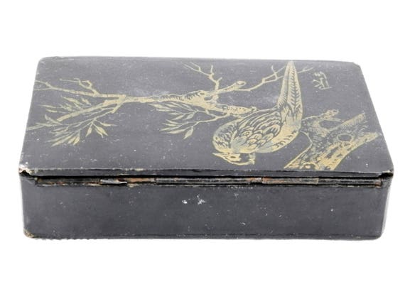 20% OFF coupon on Antique Napoleon III / 3 Black Lacquer and Gold Gilt Carton Bouilli / Papier Mache Playing Card Box Signed by Artist Featuring a Pheasant by VintageDecorFrancais